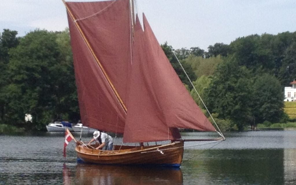 Han ringede med det samme. Det var en ældre mand, Eiler, der var nødt til at sælge sin træbåd, fordi sønnen havde brug for lidt penge i forbindelse med hans skilsmisse. Vi tog derned og snakkede med ham. Han havde selv bygget den på skabeloner, som var blevet sat af træskibsværftet i Rødby Havn. Eiler havde selv været ude i skoven og udvalgt hvert eneste lærketræ. Den hed Bådsmanden, var hvidmalet med gråt dæk, og havde en mastesokkel, hvor masten kunne lægges ned. Inden vi kørte derfra, var den vores.